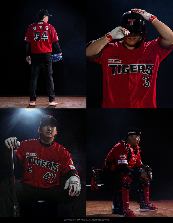 디자인 측면에서는 강렬한 레드 상의와 블랙 하의의 조합으로 타이거즈 특유의 강인함과 헤리티지를 담아낸 것이 특징이다. 유니폼 측면에는 승리의 상징인 'V 패턴'을 레드와 블랙 컬러로 조합해 포인트를 주었다. 또한, 워드마크와 등번호에 흰색 테두리를 적용해 시인성을 높였으며, 소매 끝단과 넥 라인에는 밴드 원단을 사용하여 완성도를 더했다.